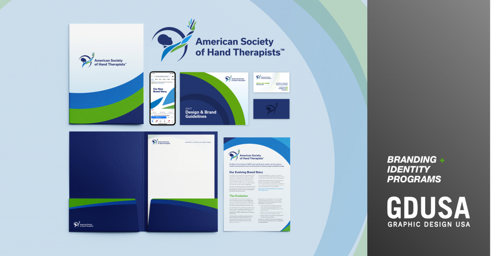 The new ASHT brand won the 2021 Graphic Design USA Awards shortly after its debut, showing merit in the power of proper inclusivity paired with great design. Now, with a brand that properly represents those in hand and upper extremity therapy, ASHT can move forward as a brand that represents the specialty equally.